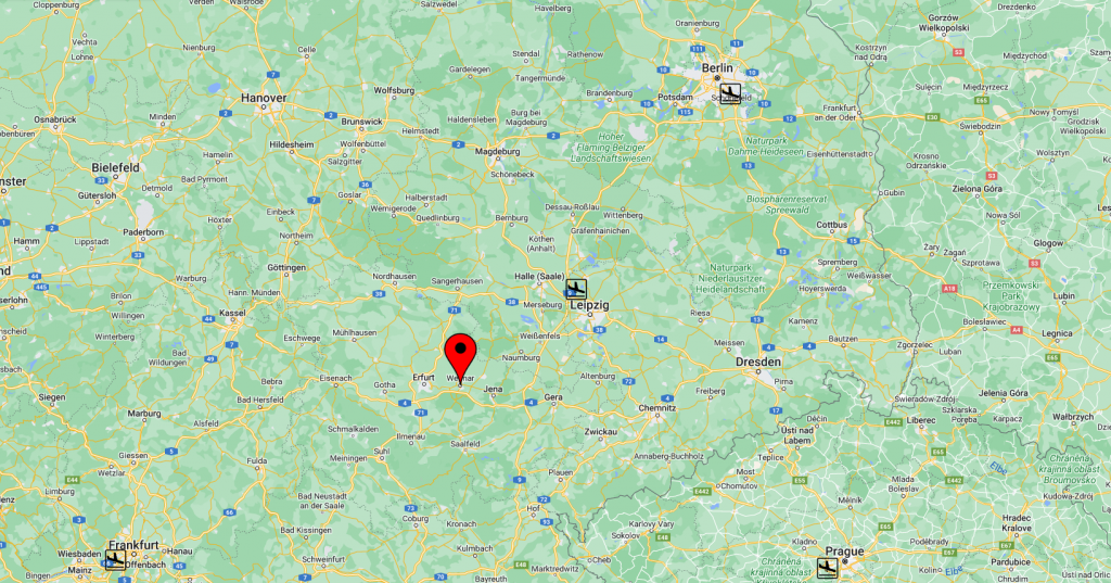 For those flying, as Weimar is almost equidistant between Berlin and Frankfurt, those are usually the best options of where to find flights to. Both have decent train connections. But be sure to use the main Frankfurt airport (FRA) as Frankfurt Hahn is one of those typical Ryanair middle of nowhere spots.
